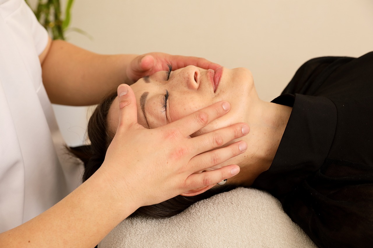 美顔器とオイルマッサージを組み合わせた小顔ケアコース。美顔器で表情筋やフェイスラインにアプローチし、血流や巡りを促進。その後、オイルマッサージで老廃物の排出をサポートし、むくみやたるみをすっきり整えます。顔まわりのコリをゆるめることで、フェイスラインが引き締まり、すっきりとした印象へ。リフトアップや左右差が気になる方にもおすすめの施術です。